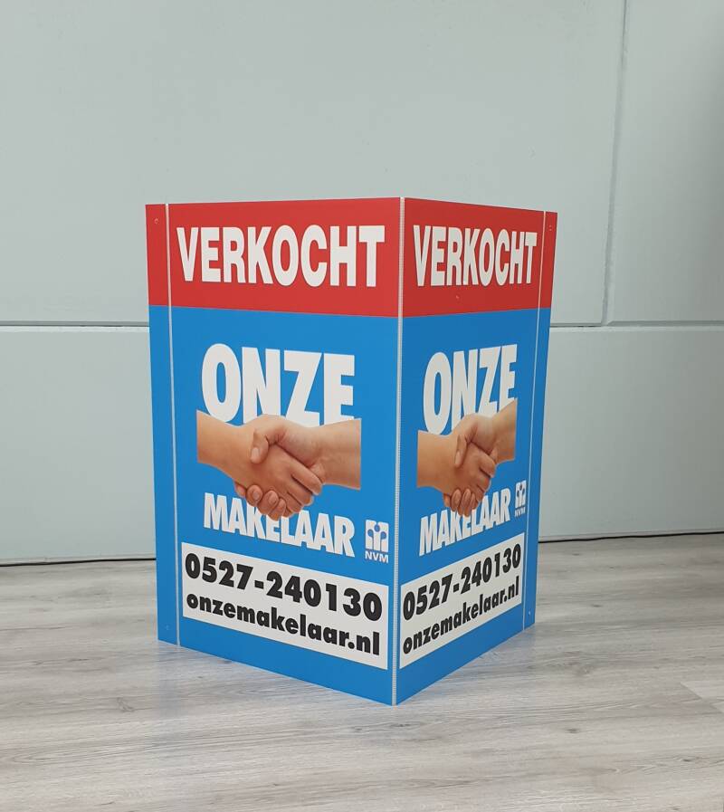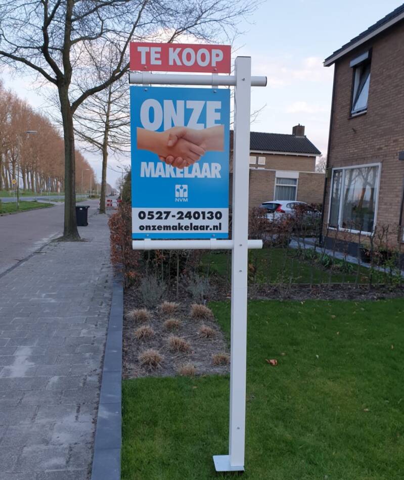 Makelaarsborden zowel staandeborden, raamborden ook wel V borden genoemd.
