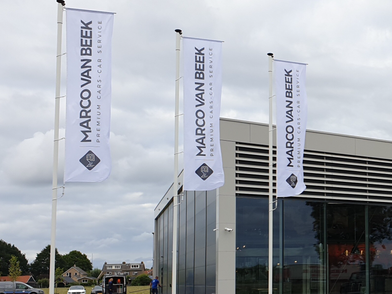 Een vlag in een mast of aan de gevel staat symbool voor trots en wie is dat niet op zijn bedrijf of instelling? Afhankelijk van de beschikbare ruimte is een oneven aantal masten aan te raden, vaak worden 3 of 5 masten met logovlaggen geplaatst. De hoogte van de mast wordt bepaald aan de hand van de hoogte van het pand.